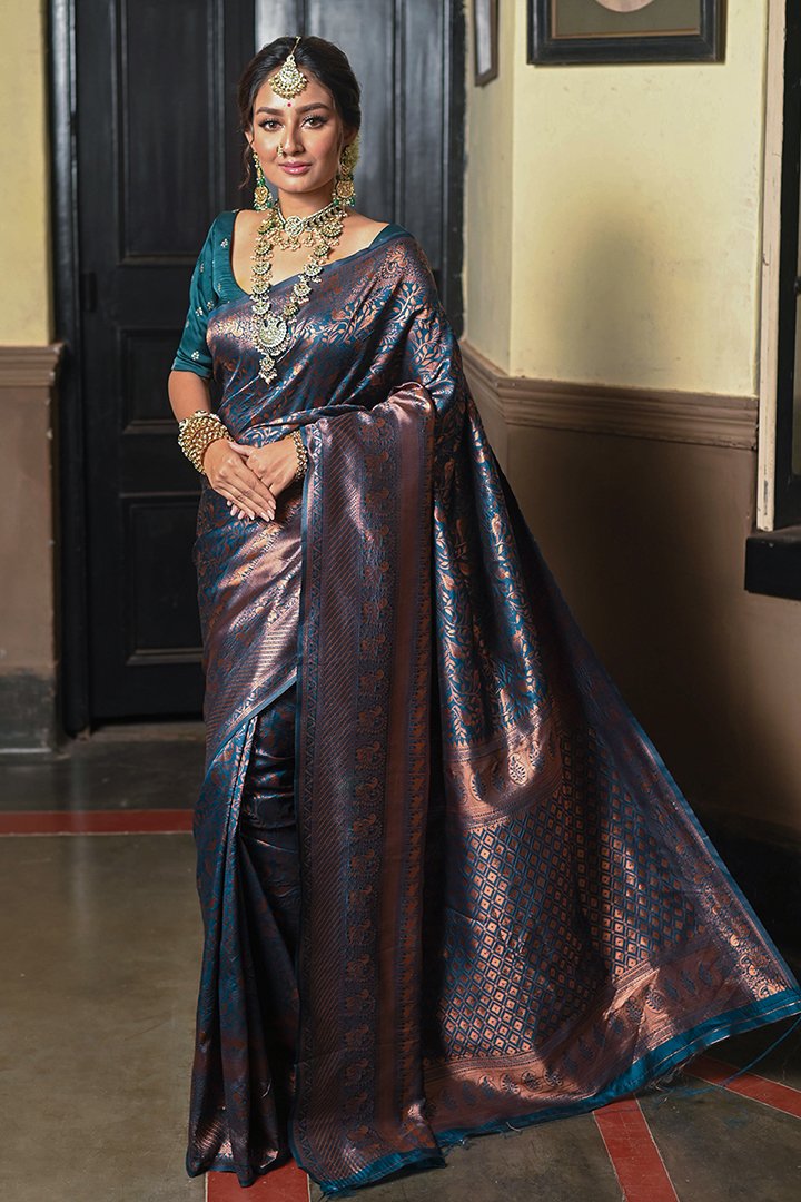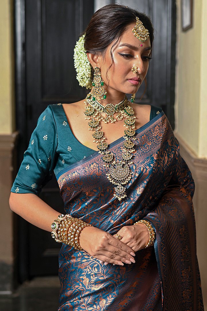 Beautiful Navy Blue Banarasi Art Silk Saree