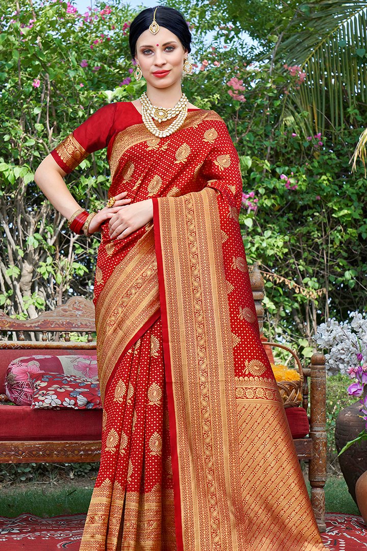 Beautiful Red Banarasi Art Silk Saree