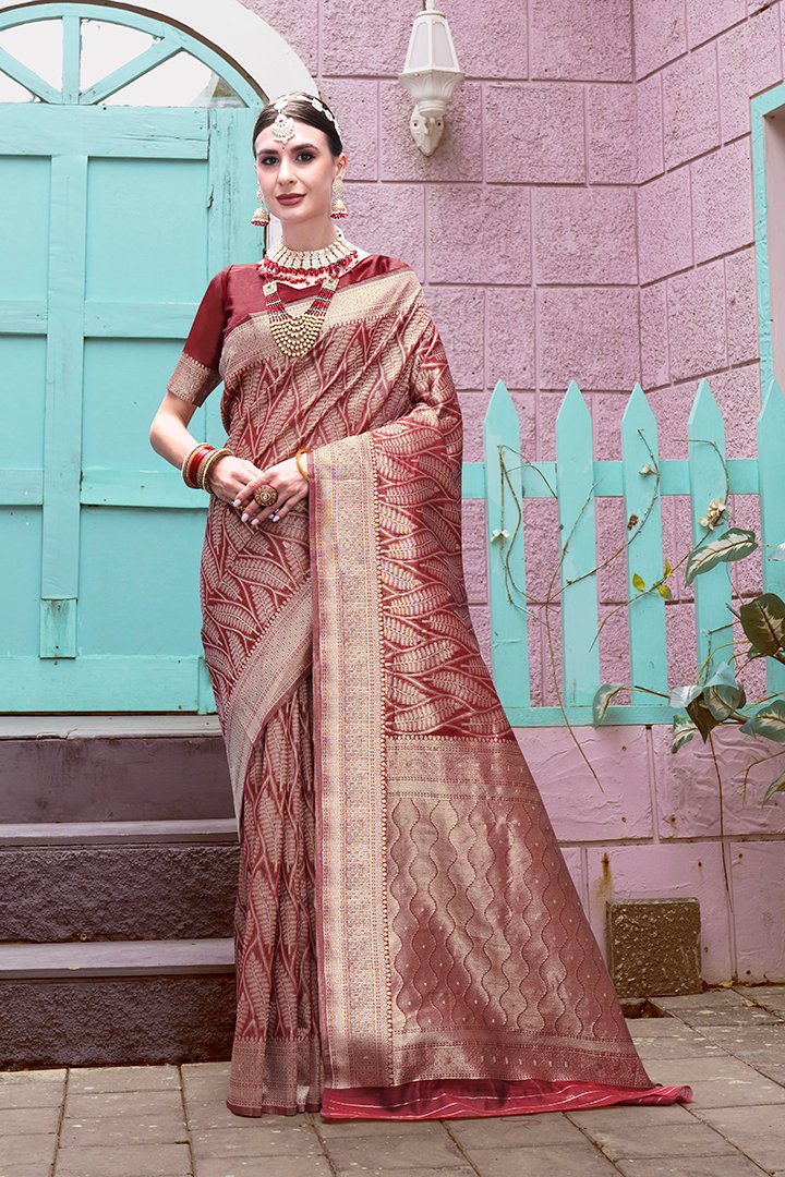 Beautiful maroon Banarasi Art Silk Saree