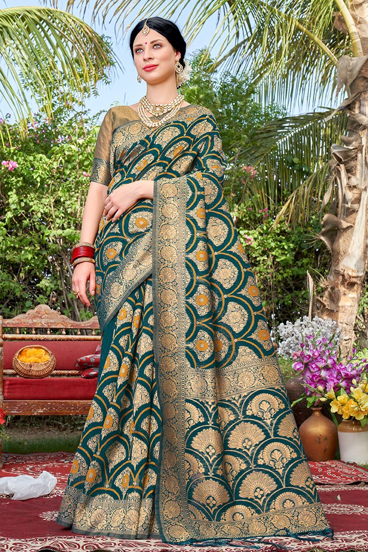 Beautiful rama Banarasi Upada Art Silk Saree