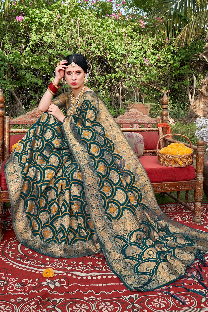 A Banarasi saree is a luxurious and exquisitely crafted traditional Indian garment known for its opulent silk fabric, intricate weaving techniques, and timeless elegance. Originating from the city of Varanasi (formerly known as Banaras) in Uttar Pradesh, India, these sarees hold a special place in Indian culture and are revered for their rich heritage.