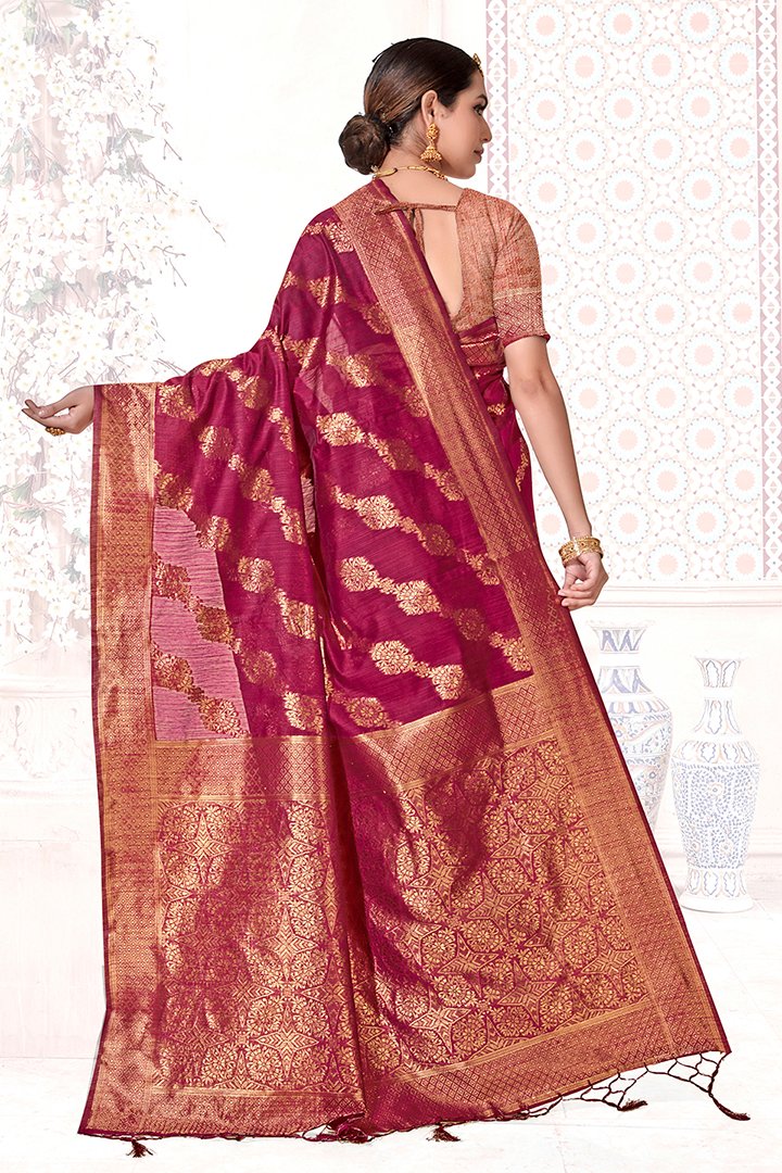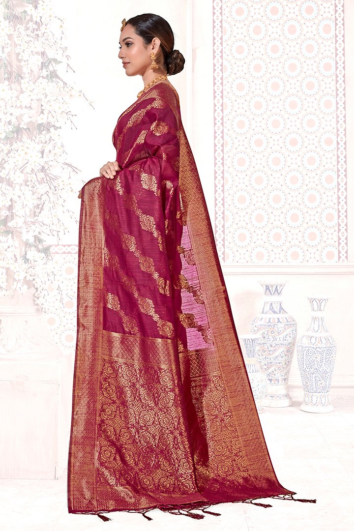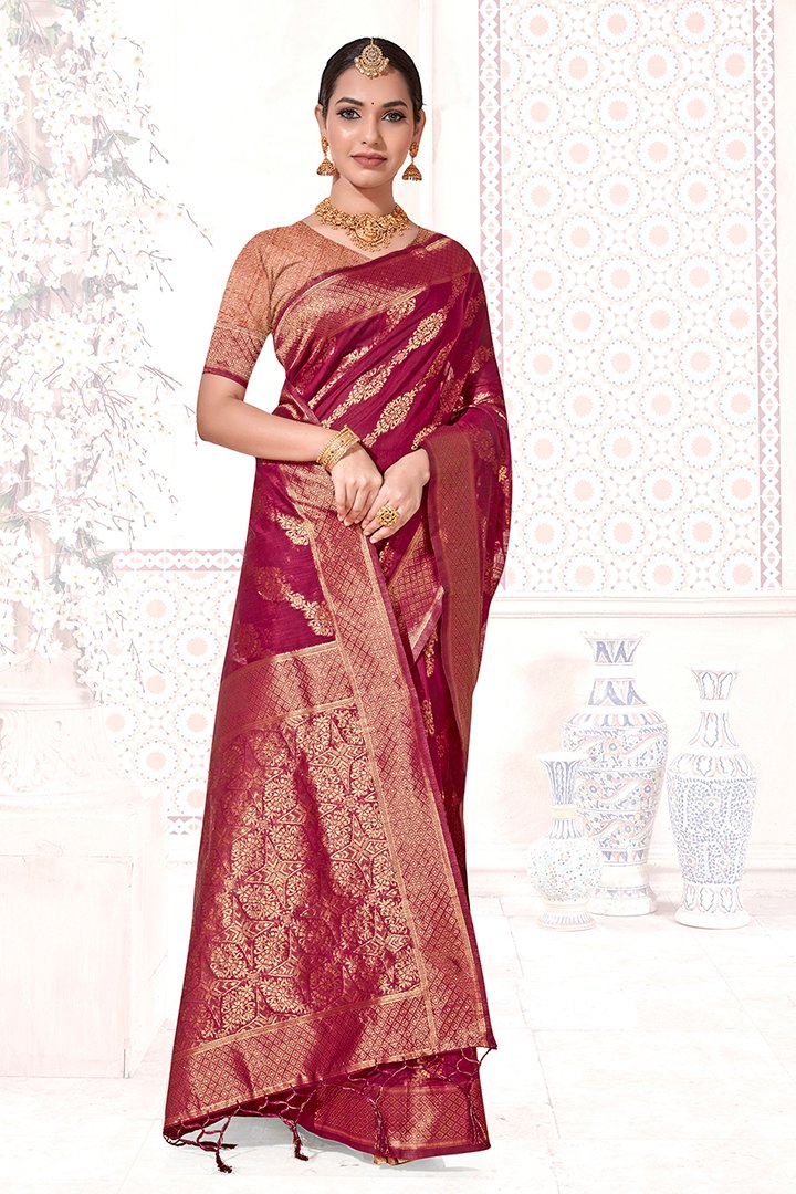 Beautiful Mahroon Chanderi Cotton Saree