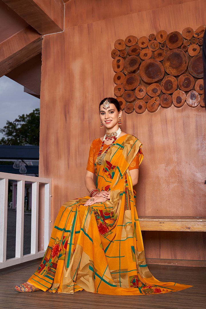 Beautiful yellow Printed Georgette Saree