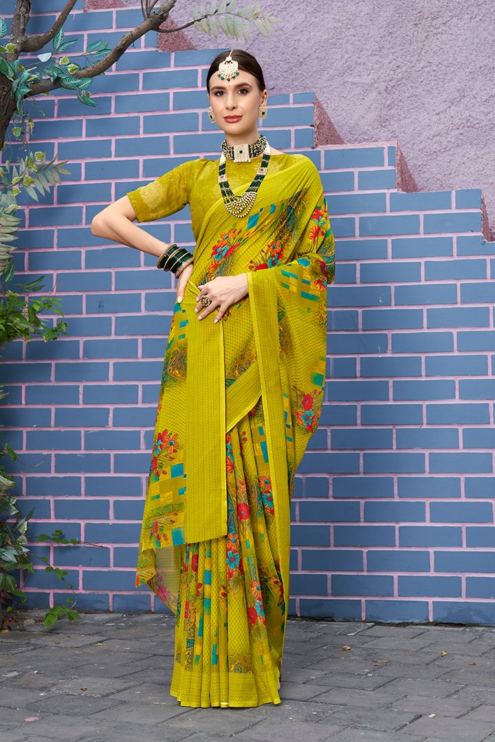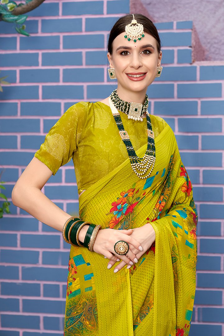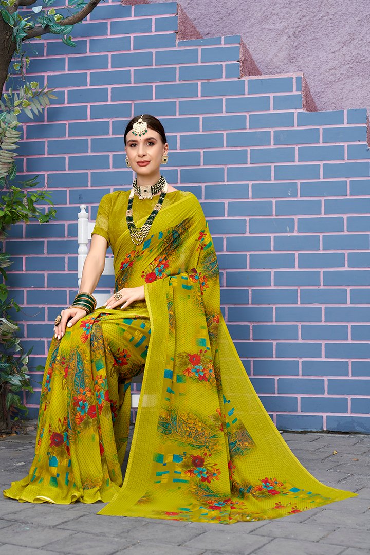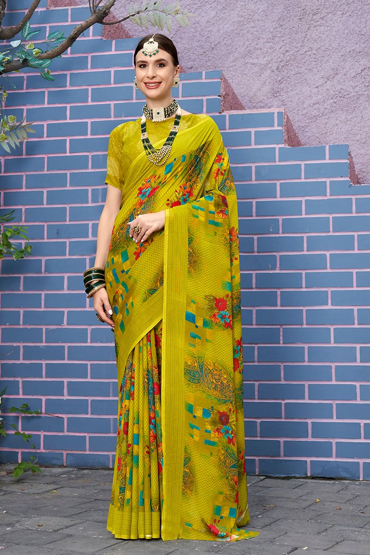 Beautiful yellow Printed Georgette Saree