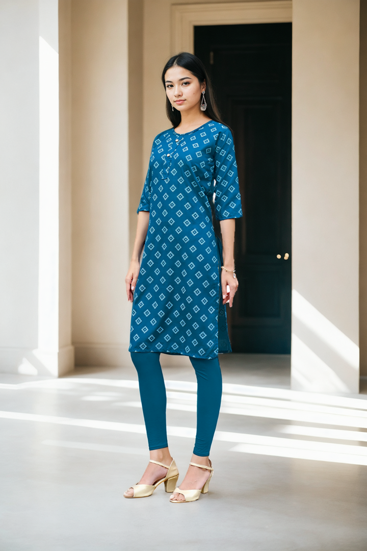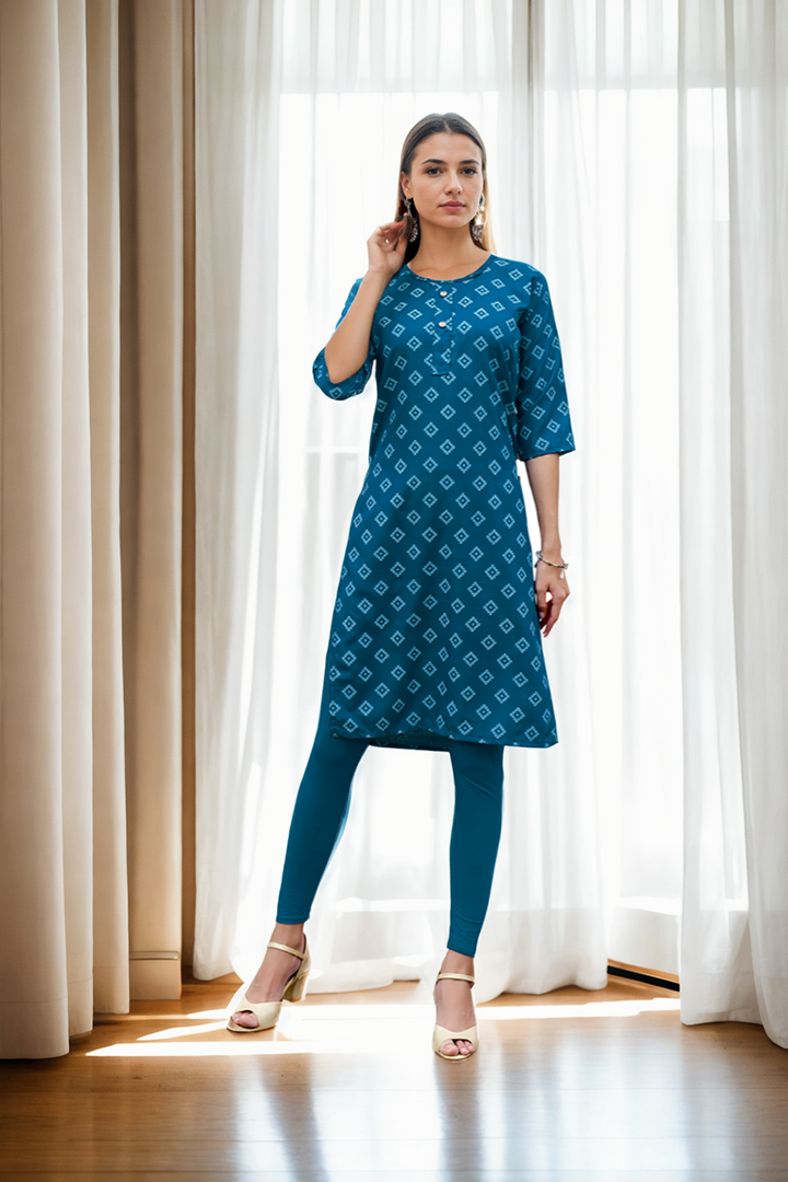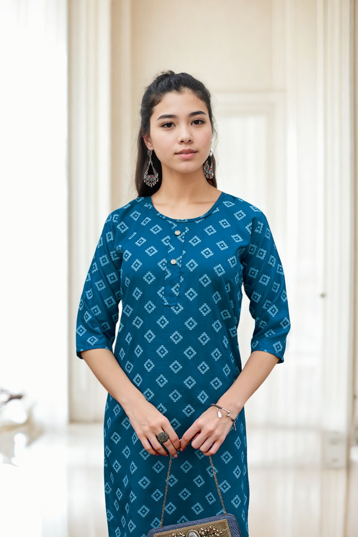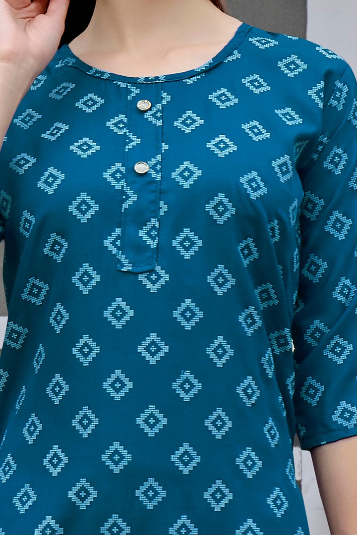 V4M Women’s Blue Geometrical Table printed Kurti